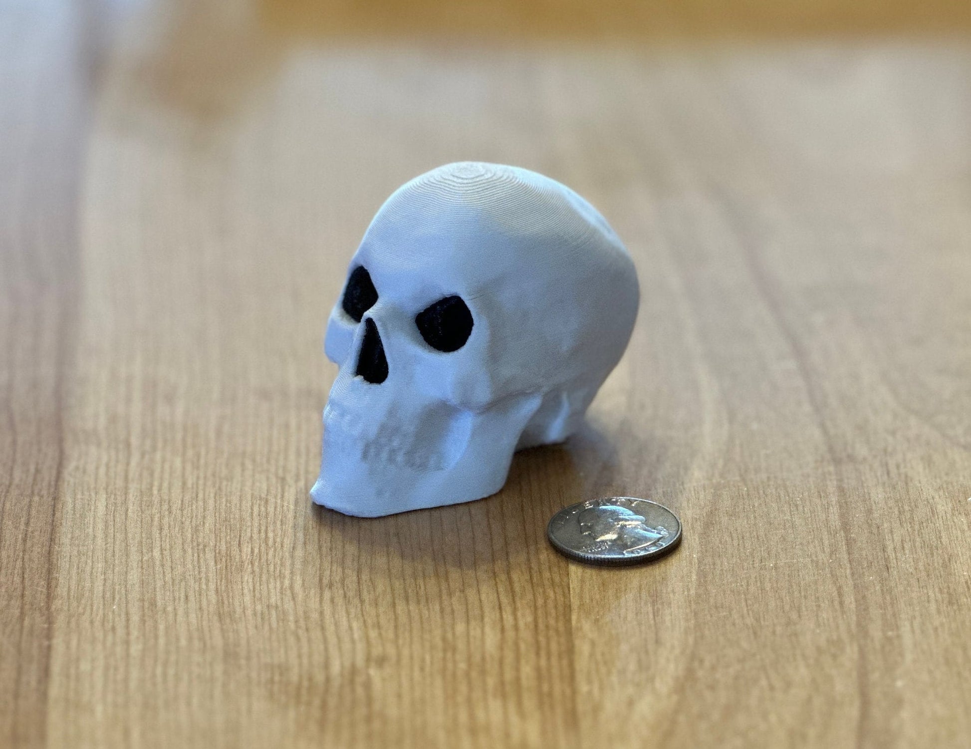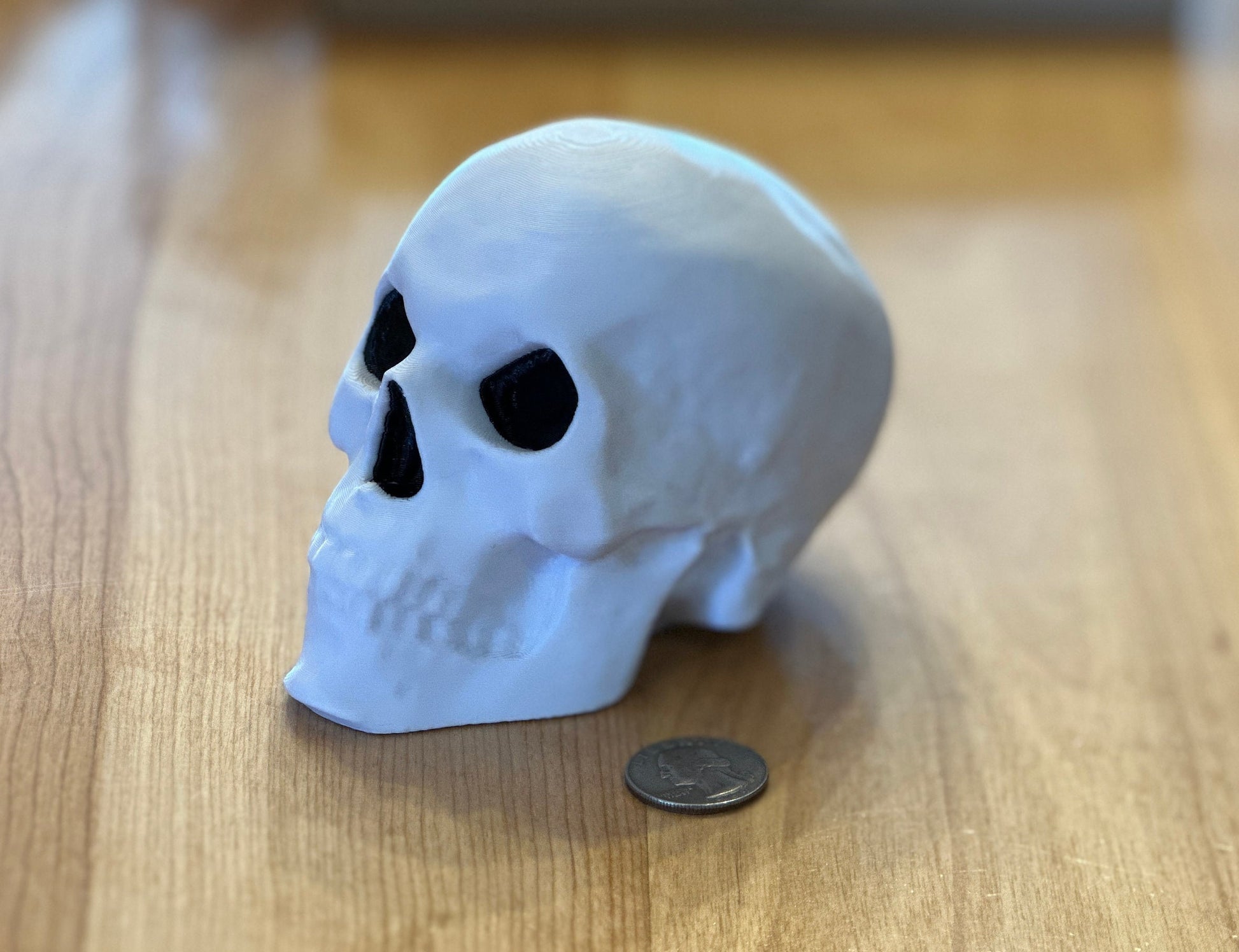 Manufactured from strong and durable PETG plastic, this 3D printed Skelly Head Desk Ornament is available in a two-tone multicolor white and black finish.